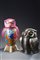 Lotto composto da un portaghiaccio in metallo ed una scultura in terracotta policroma a forma di gufi (misure diverse) Lot comprising an owl ice bucket and a polychrome terracotta sculpture (various measures)
