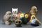 Lotto composto da sei sculture di materiali diversi raffiguranti gufi Lot...