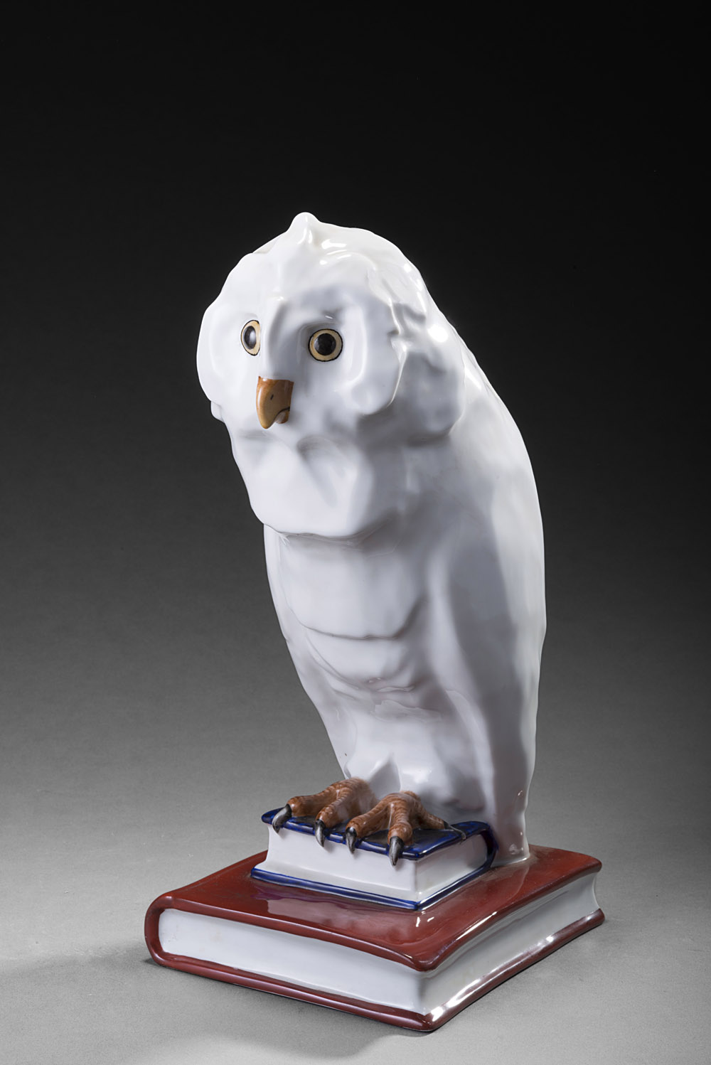 Manifattura di Herend Ungheria sec. XX scultura in porcellana raffigurante gufo (h cm 30) Manufacture of Herend, Hungary, 20th century. Porcelain owl sculpture