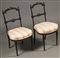 Coppia di sedie da camera in legno ebanizzato e schienale a giorno intagliato...