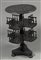 Etagere in legno ebanizzato e inciso a volute, ripiani decorati con ringhierina tornita, piedi a cipolla. Fine sec. XIX (diam. cm 47x h cm 75) (lievi difetti) Ebonized wood étagère, late 19th century (minor defects)