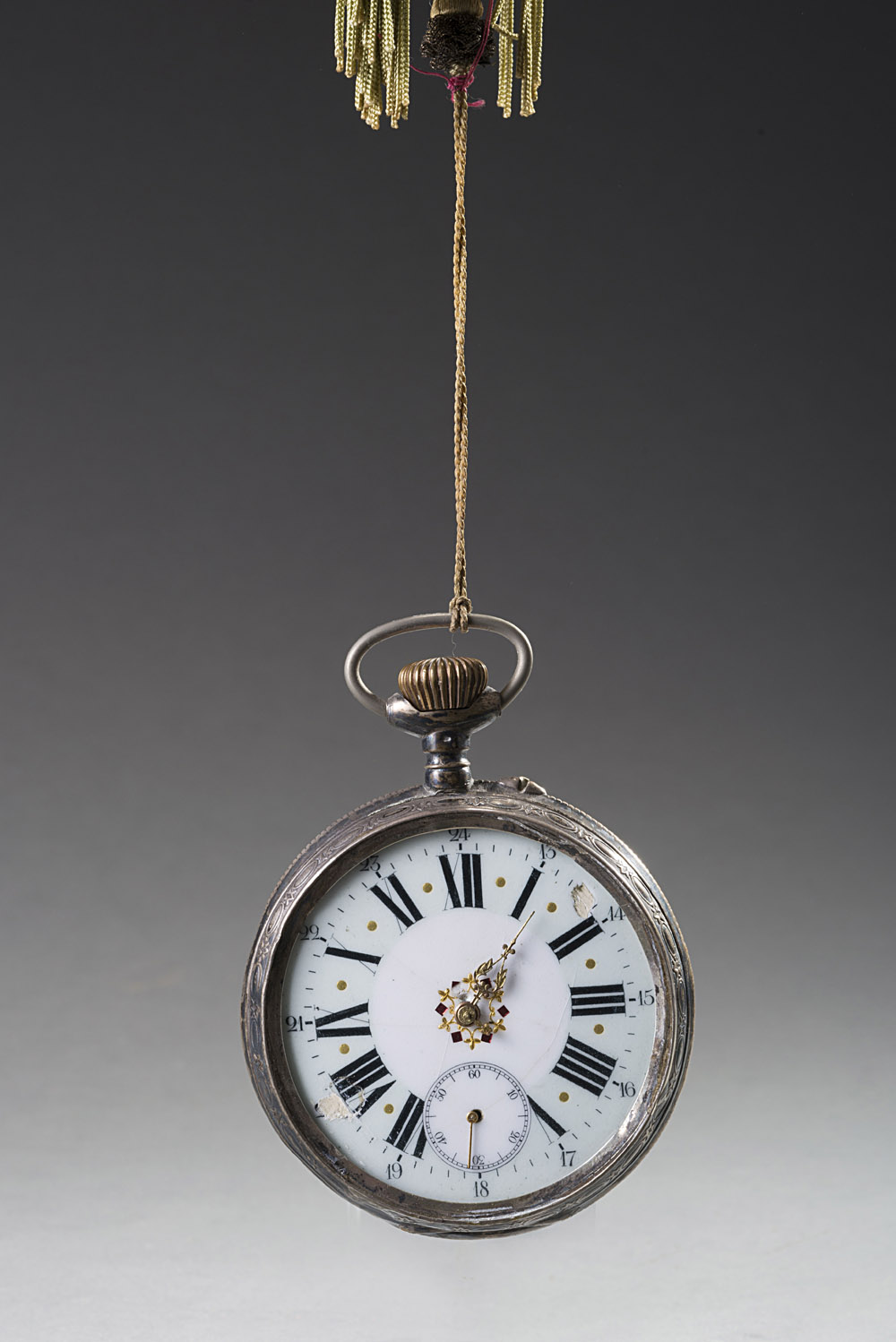 Orologio da tasca in argento con cassa cesellata a locomotiva, quadrante a...