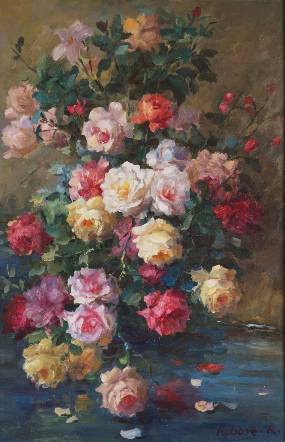 Firma indecifrata “Fiori” olio su tela (cm.90X60) firmato in basso a destra Undecipherd signature "Flowers" oil on canvas, signed at bottom right
