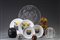 Gruppo di dieci fra piatti e oggetti vari decorati con gufi (difetti) Set of ten owl plates and objects (defects)