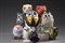 Lotto composto da dieci statuette in materiali diversi raffiguranti gufi (difetti) Lot comprising ten owl statuettes in different materials (defects)