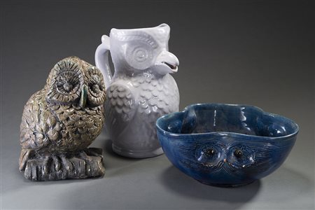 Lotto composto da tre statuette diverse raffiguranti gufi (difetti) Lot...