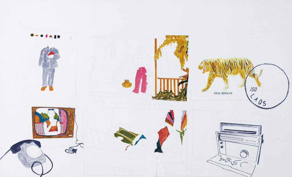 FRANCO ANGELI Roma 14/05/1935 - Roma 12/11/1988 Immagini elementari di un progetto di viaggio, 1970 tecnica mista su cartoncino cm. 70x100, firma e anno al retro, dichiarazione d'autenticità della Galleria La Scaletta (S.Polo-RE) su foto, opera registrata presso l'Archivio Franco Angeli a cura di Angiolino Calestani, pubblicato sul "Catalogo del disegno italiano" numero 10 1990-91, Edizioni La Scaletta, al numero 420, pagina 164.