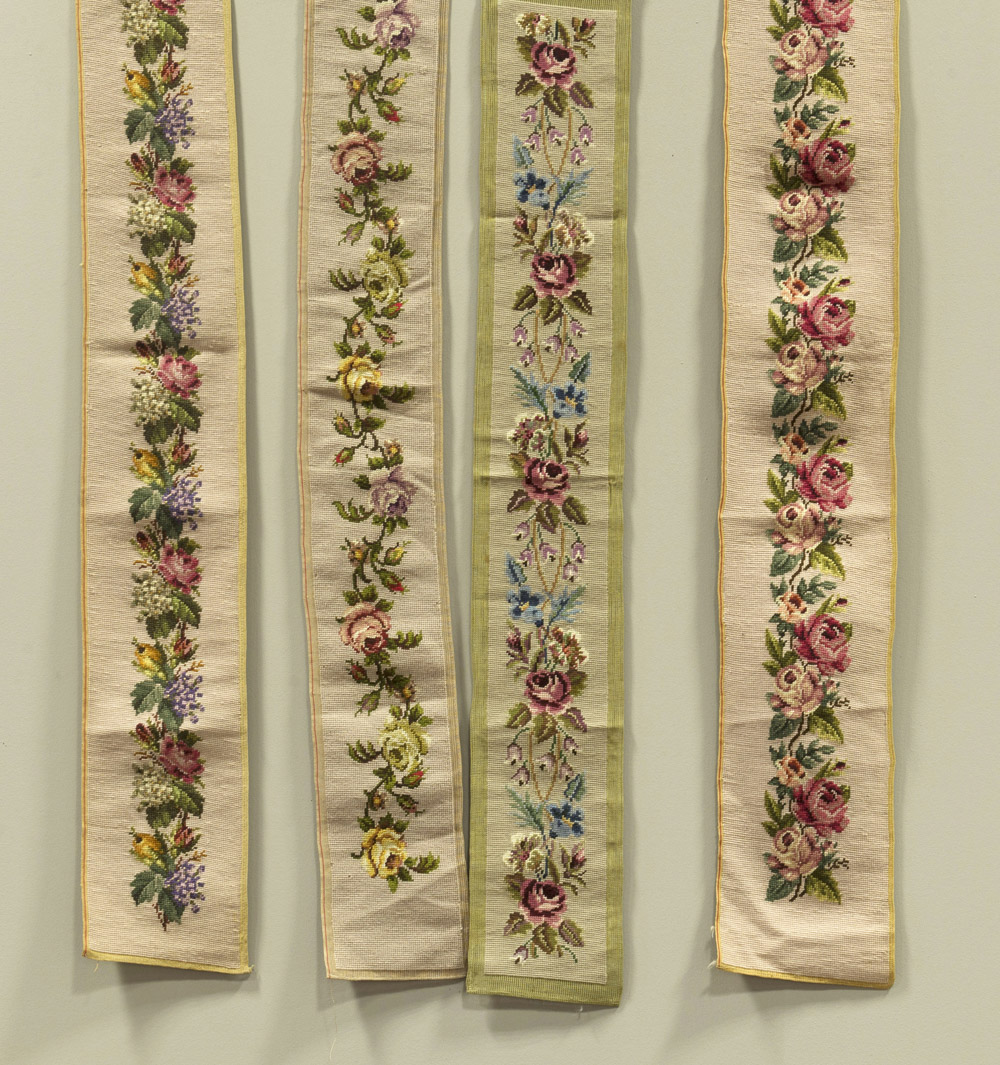Lotto composto da due coppie di tiracampanelli decorati a fiori in policromia. Sec. XX Lot comprising two pairs of bell pulls, 20th century