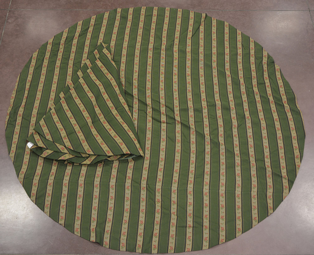 Lotto composto da una coppia di copritavolo foderati di forma rotonda con disegno "Restaurazione". Sec. XX (d cm 220) (lievi difetti) Lot comprising a pair of round tablecloths, 20th century (minor defects)