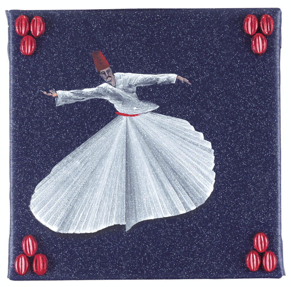 ALDO MONDINO Torino 04/10/1938 - 10/03/2005 Senza titolo olio e applicazioni di cioccolatini su linoleum cm. 40x40, firma al retro, opera registrata presso l'Archivio Aldo Mondino come da dichiarazione con scheda allegati, entro teca in plexiglass.