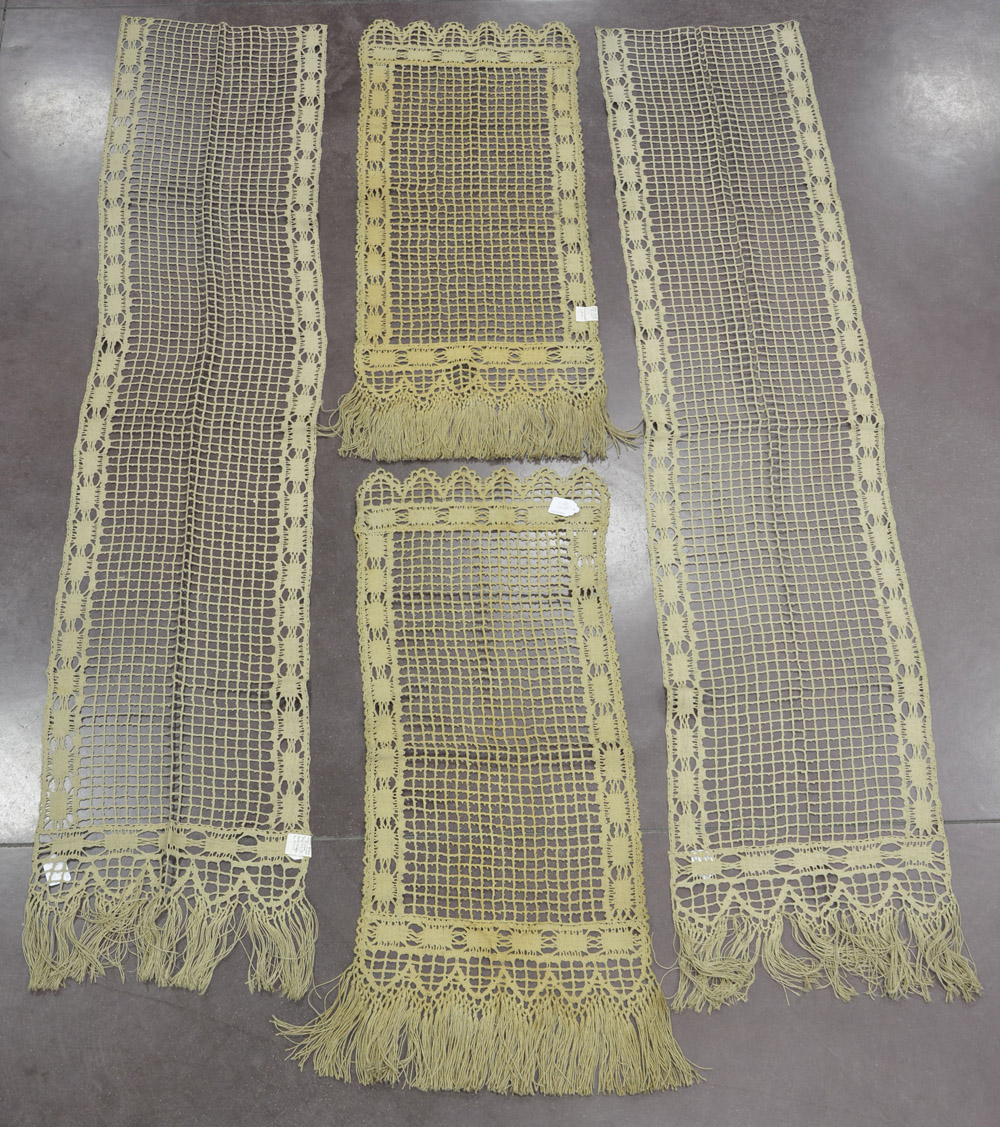 Lotto composto da due coppie di tende rete tombolo lavorato a mano. Sec. XX...