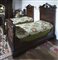 Coppia di letti ad una piazza lastronati in noce e radica . Testate con ringhierine e pinnacoli torniti ed ebanizzati , pediere con montati a colonna scolpiti a volute. Lombardia sec. XIX (difetti e mancanze) Pair of single beds. Lombardy, 19th century (defects and losses)