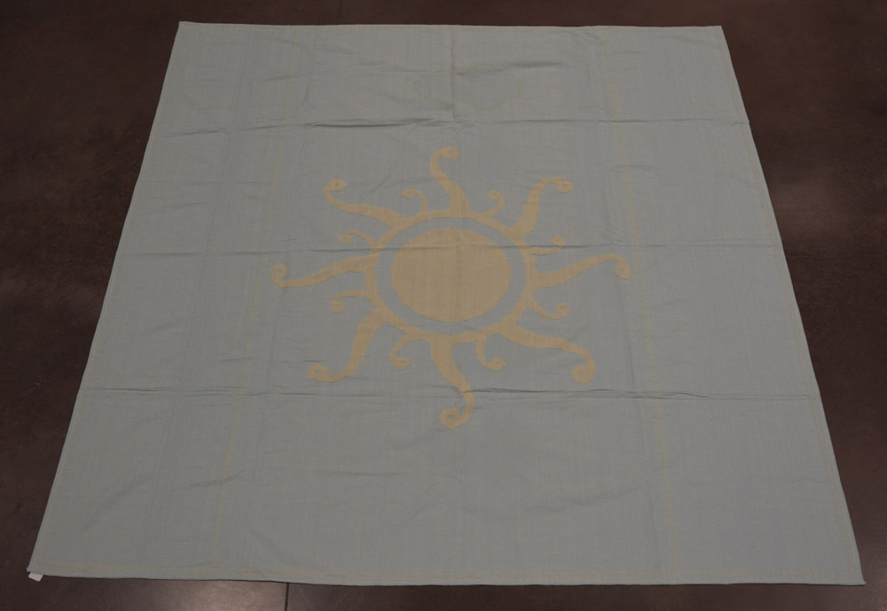 Copriletto matrimoniale in cotone color azzurro e ricamo sardo color panna...
