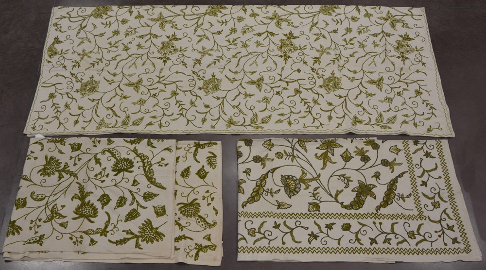 Lotto composto da tre copritavolo in cotone con ricamo manuale, fantasie e...
