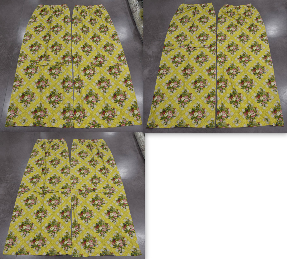 Lotto 806 | Sei tende in cotone stampato con mazzi di fiori su griglia color giallo...