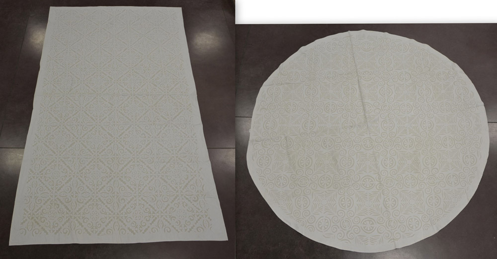 Due tessuti stitch uno rotondo (d cm 210) ed uno rettangolare (cm 314x177)(difetti) Two pieces of stitch cotton fabric (defects)