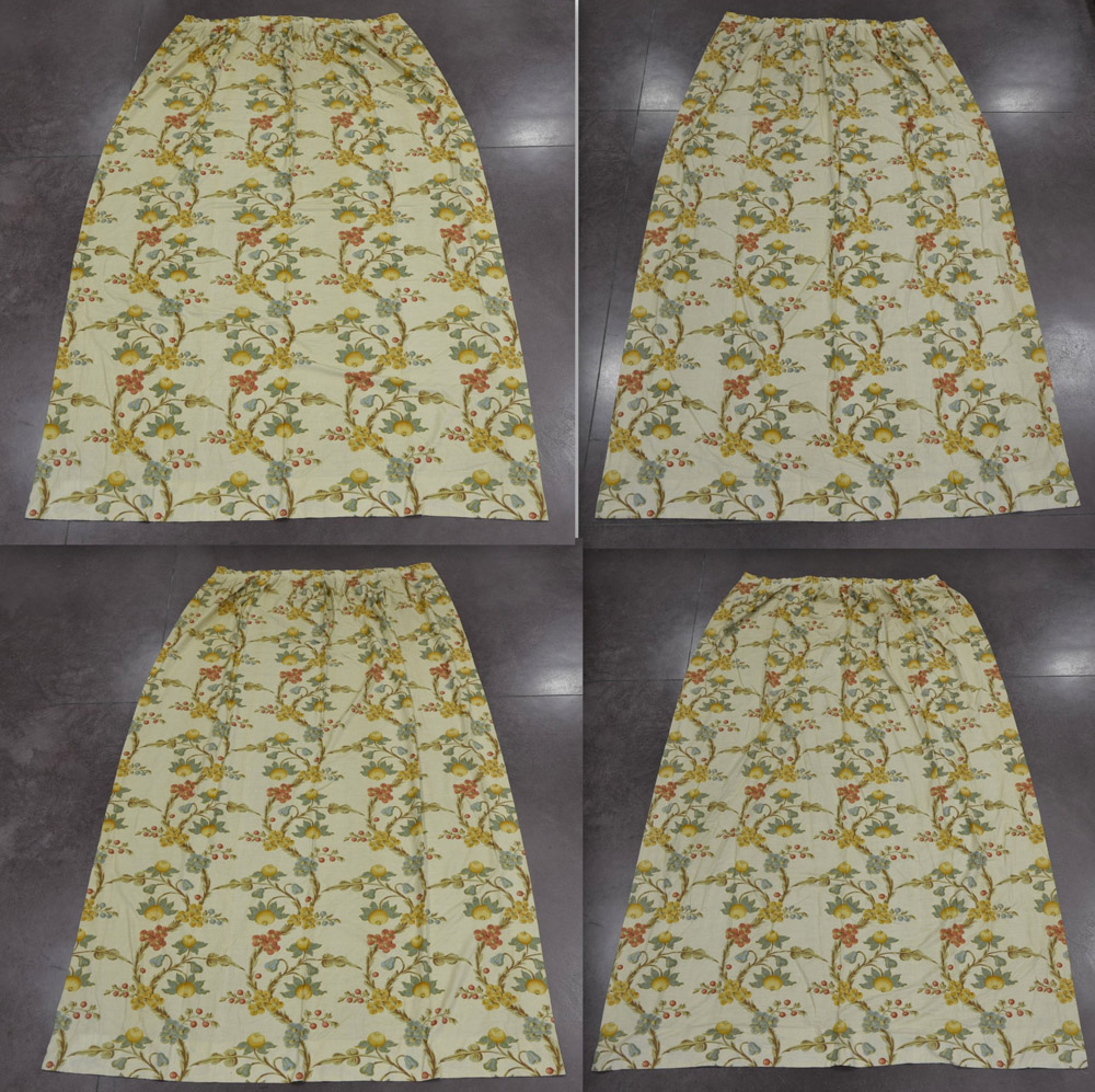 Quattro tende in cotone stampato con rami fioriti su fondo beige (cm296x200)(difetti) Four printed cotton curtains (defects)
