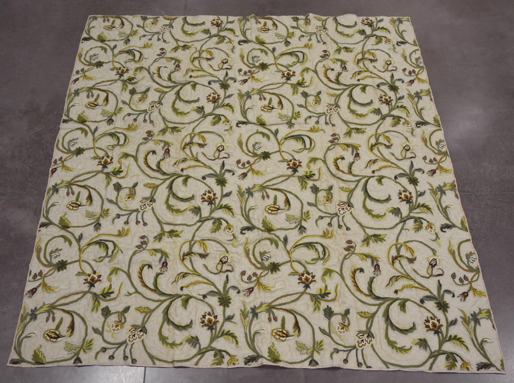 Coperta ricamata a catenella in lana, policroma decorata con rami fioriti,...