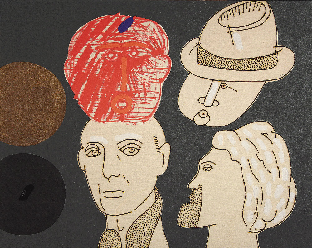 CONCETTO POZZATI Vo' Vecchio (Pd) 01/12/1935 Tutto di ...testa, 2002 olio, acrilico e smalto su tavola pirografata cm. 40x50, titolo, firma e anno al retro, Archivio Generale Concetto Pozzati numero 1532/07 su foto.