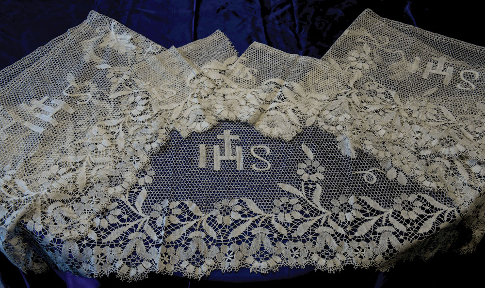 Lotto composto da un camice per sacerdote e due maniche tombolo. Sec. XX (lievi difetti) Lot comprising a clerical robe and two bobbin lace sleeves, 20th century (minor defects)