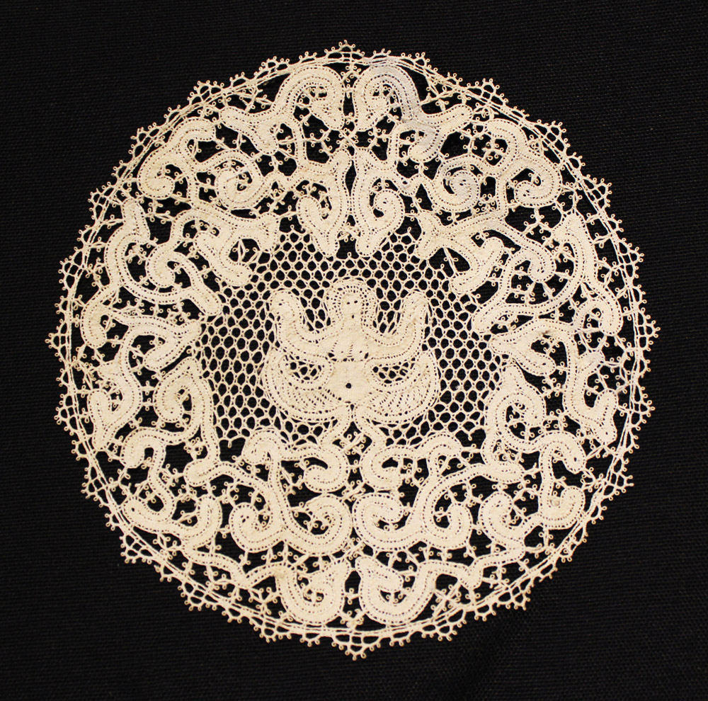 Lotto composto da nove centri punto Milano con figura di dea del mare al centro. Sec. XX (diam. cm 15) (lievi difetti) Lot comprising nine Milano stitch doilies, 20th century (minor defects)