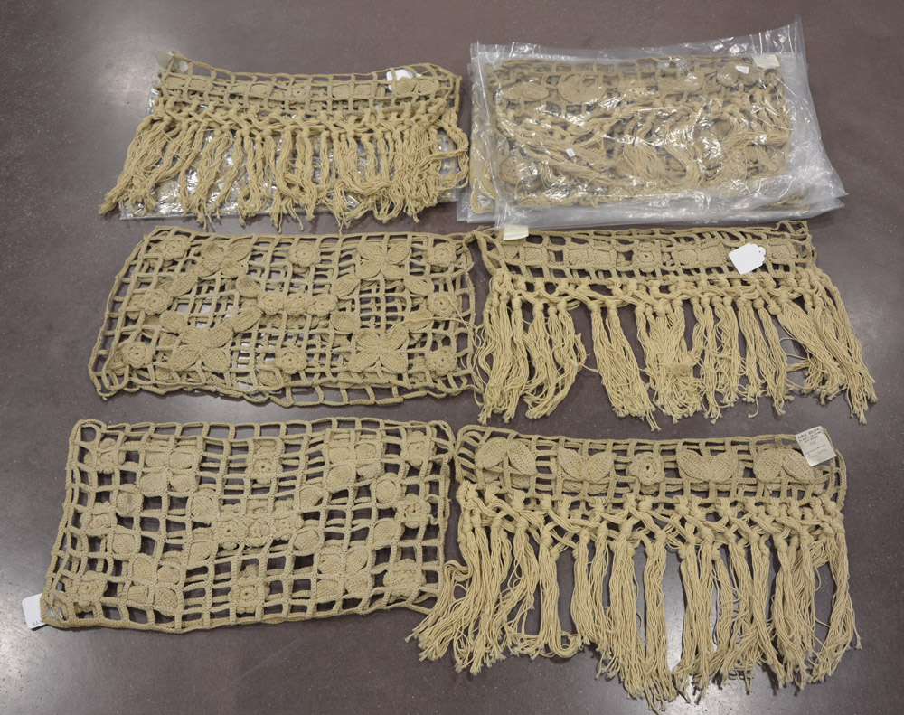 Lotto composto da sei guarnizioni per tende in coppia (centrino e terminale...