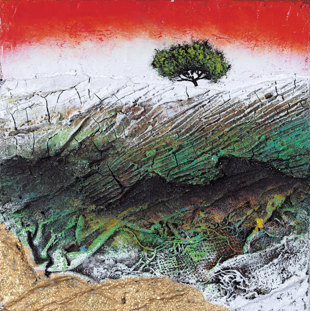 MARIO PASCHETTA Milano 27/04/1949 Landscape, 2007 olio, malte e terre naturali su tela cm. 30x30, titolo e firma al retro, dichiarazione d'autenticità e archivio dell'artista numero 655 su certificato con foto allegato, opera senza cornice.