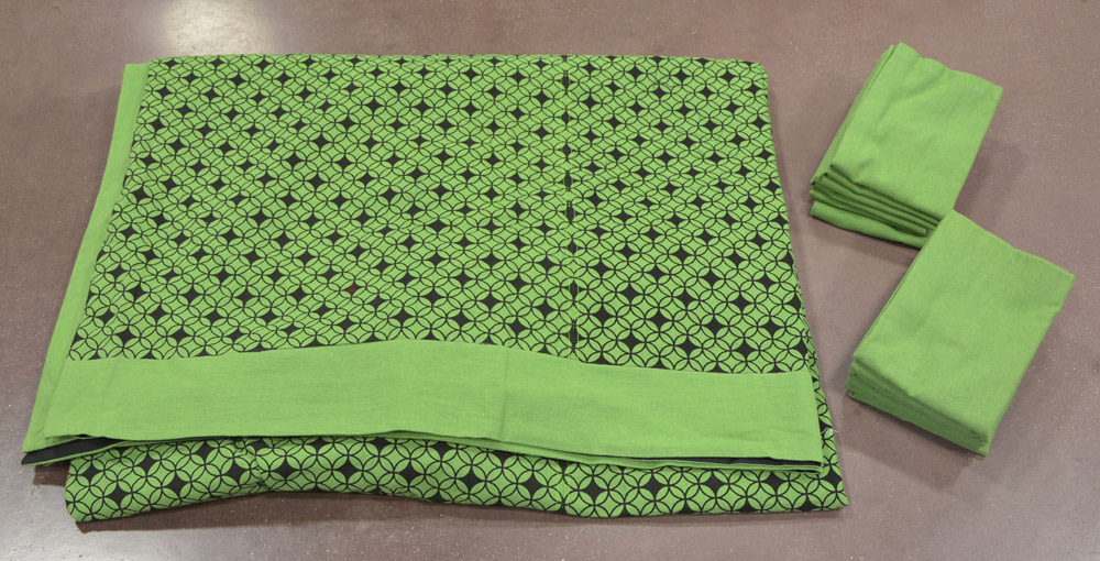 Lotto composto da una tovaglia rettangolare in cotone color verde con motivo...
