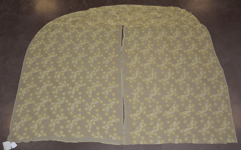 Sari color ocra riccamente decorato con perline in tinta e ricami. Sec. XX...