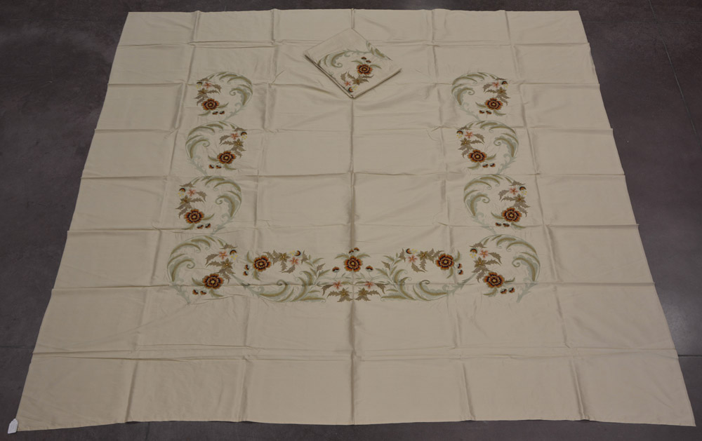 Lotto composto da due copriletto in seta pura ricamati a telaio. Sec. XX (cm...