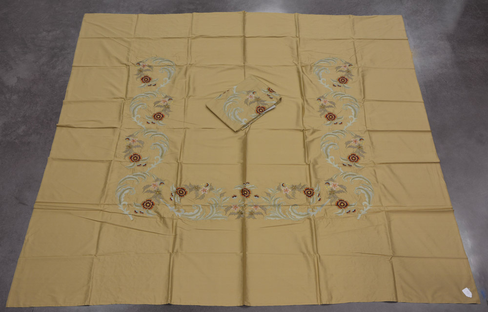 Lotto composto da due copriletto in seta pura ricamati a telaio. Sec. XX (cm...
