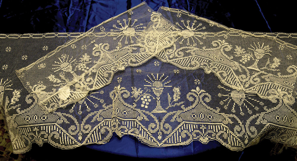 Lotto composto da un camice per sacerdote e due maniche filet. Sec. XX (lievi...