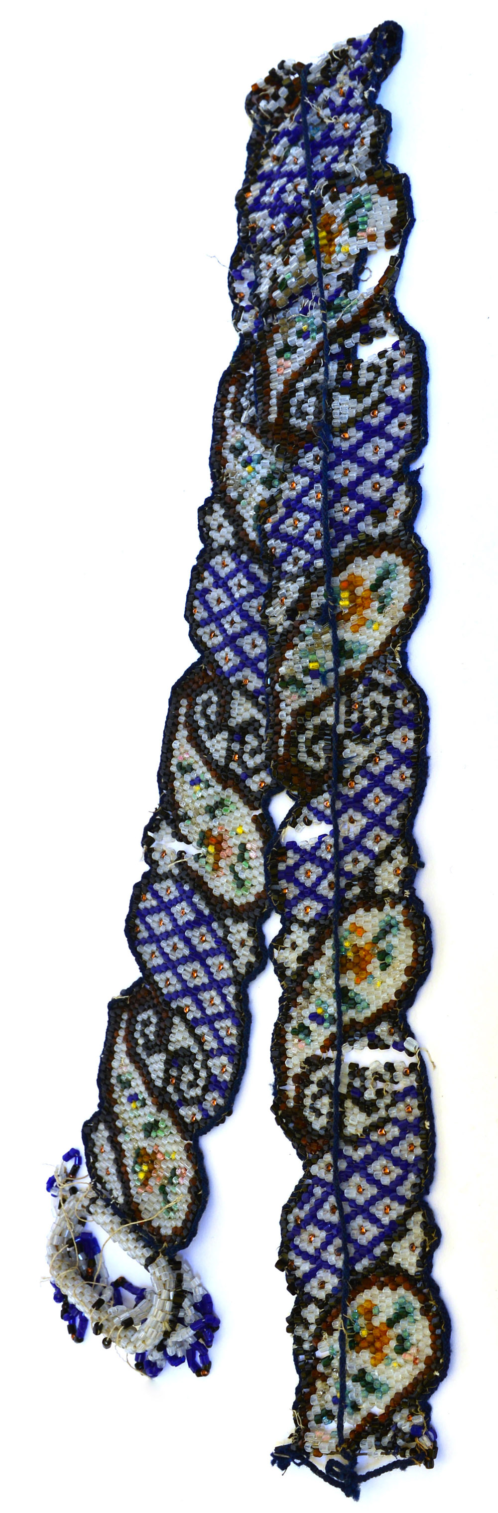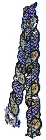 Coppia di striscie tiracampanelli decorate sull'intera superficie con perle, fondo in metallo. Manifattura veneziana del secolo XIX. Lunghezza cm 210. Pair of bell-pulls. Venetian manufacture of the 19th century