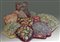 Lotto di dodici cuscini eseguiti a piccolo punto con colori a forti tinte e...