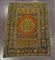 Tappeto Kaiseri Anatolia inzio sec. XX disegno a medaglione verde su fondo arancio molteplici bordure nei toni dell'azzurro, giallo e rosso (difetti) (cm 200x130) Kayseri carpet, Anatolia, 20th century (defects)