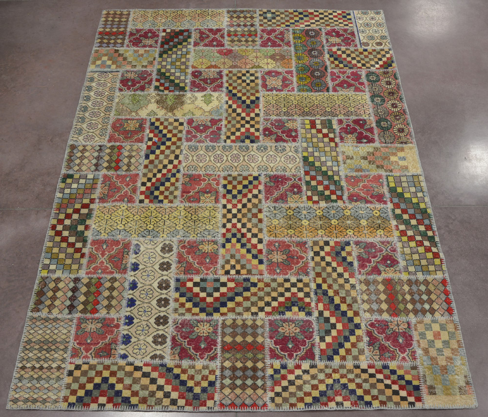 Tappeto patchwork contemporaneo con ritagli di tappeti policromi (difetti)(cm 225x325) Contemporary patchwork carpet (defects)