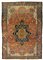 Tappeto Seraphi Persia sec. XIX disegno a medaglione color tabacco e blu su fondo mattone, angolari bianchi, bordura a meandro color mattone (378x280)(difetti) Seraphi carpet, Persia, 19th century (defects)