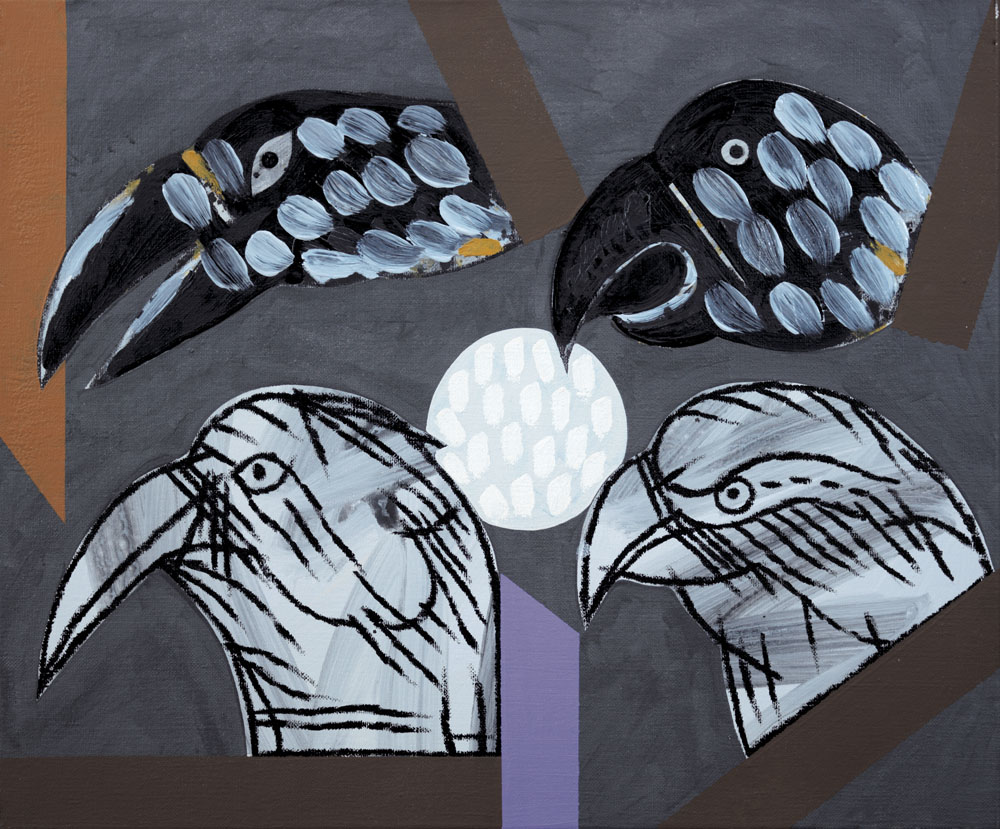 CONCETTO POZZATI Vo' Vecchio (Pd) 01/12/1935 Sentinelle, 1998 olio, smalto e acrilico su tela cm. 50x60, firma, titolo, anno e archivio numero 1734/07 al retro, opera registrata presso l'Archivio Generale Concetto Pozzati come da dichiarazione del Gruppo G.A.M. (Faenza) su foto, pubblicato sul Catalogo Generale, tomo 2°, pagina 253.