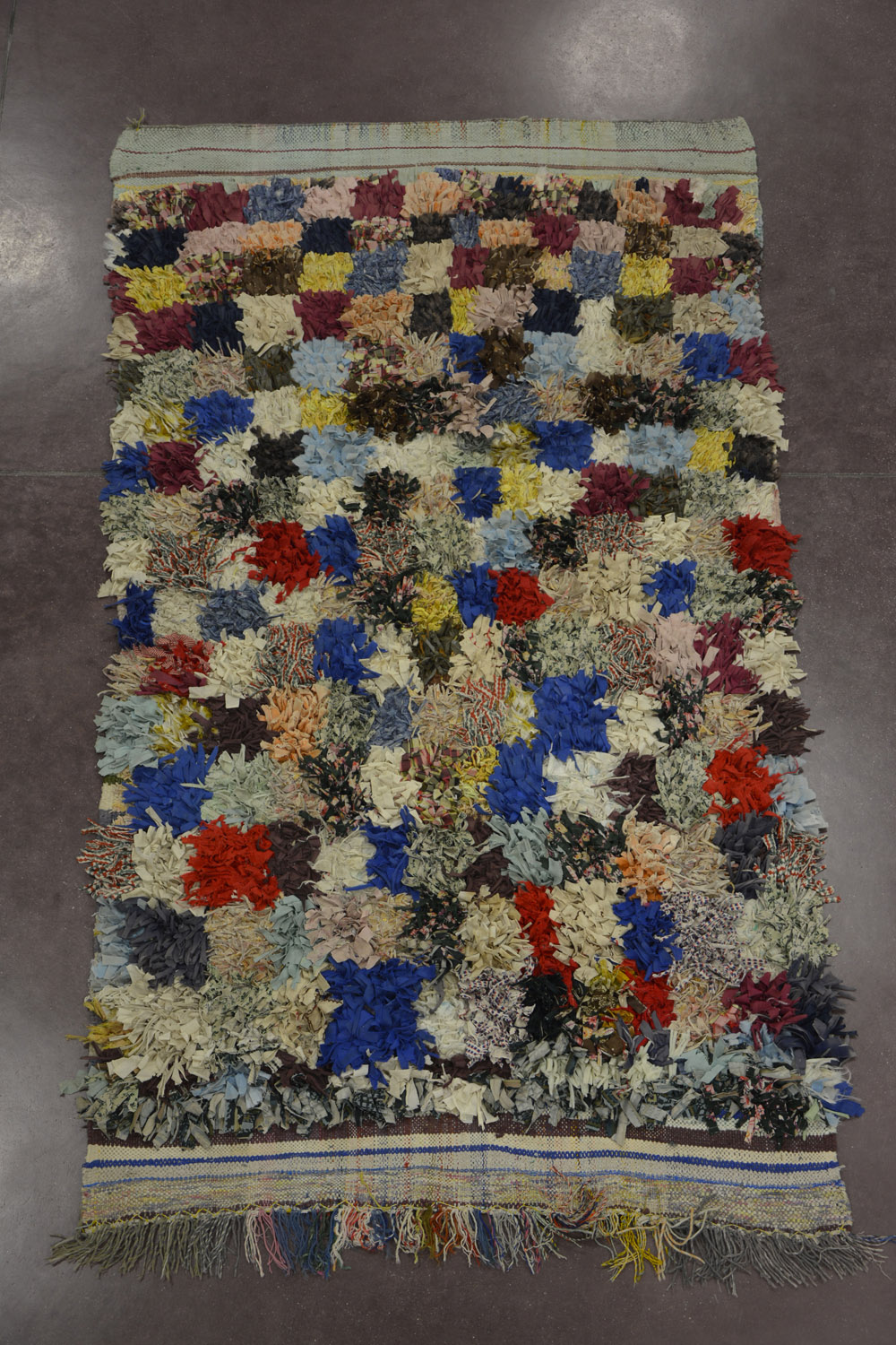 Lotto 1041 | Tappeto marocchino annodato con strisce di tessuto policromo...