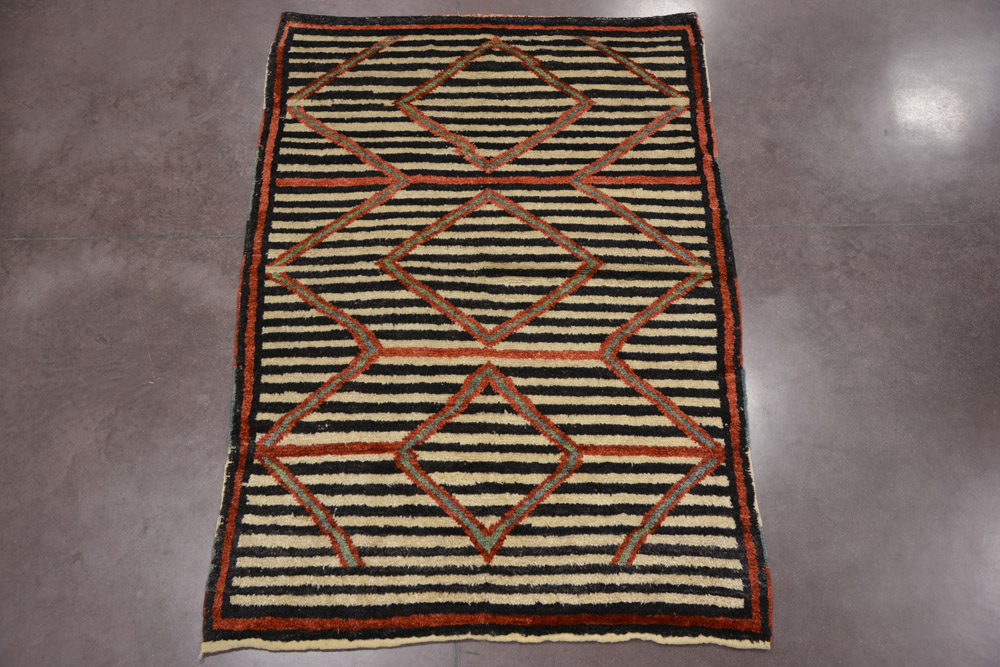 Tappeto Gabbeh, Persia sec. XX disegno geometrico nei toni del rosso verde su fondo in lana naturale bianca e marrone (cm 230x158)(difetti) Gabbeh carpet, persia, 20th century (defects)