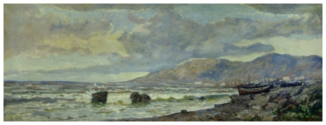 GIUSEPPE ROSSI Firenze 1876 – Padova 1952 Senza titolo Olio su tavola 34,5 x 89. Firma in b. a s.