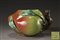 Lavapennelli in porcellana policroma a forma di pesca, composto da due frutti...