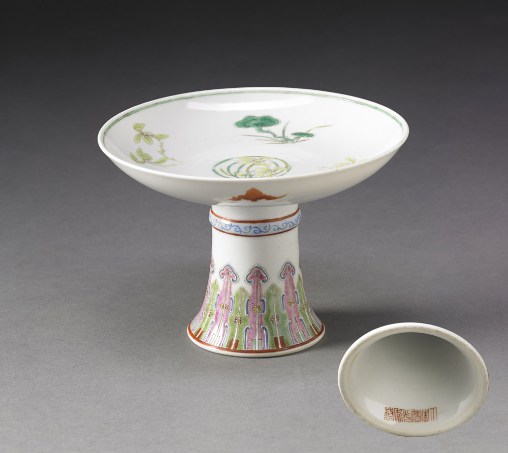 Alzata in porcellana decorata a motivo di piante negli smalti della Famiglia...