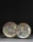 Coppia di piatti in porcellana cantonese Famiglia Rosa su fondo celadon,...