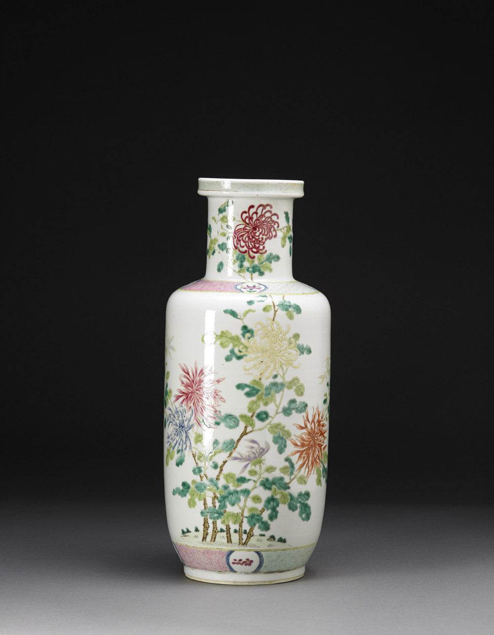 Vaso rouleau in porcellana Famiglia Rosa decorato con rami in fiore (lunga felure su un lato) Cina, seconda metà sec. XVIII A Famille Rose rouleau vase, enamelled with flowering branches (one long vertical hairline crack to one side) China, second half 18th century (h cm 44)