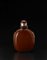 Snuff bottle in corniola di forma arrotondata con mascheroni incisi sui lati, cucchiaino in argento Cina, fine XIX/inizio XX secolo A carnelian agate snuff bottle with twin mask handles, silver spoon China, late 19th/early 20th century (h cm 7,5)