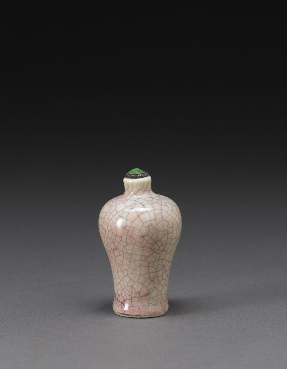 Vaso meiping in miniatura in porcellana flambè con fine craquelure, coperchio in giada Cina, XIX/XX secolo A miniature meiping flambé vase with fine crackling, jade stopper China, 19th/20th century (h cm 7,5)