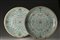Coppia di grandi piatti in porcellana in Famiglia Rosa su fondo turchese,...