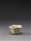 Coppa per l'acqua in porcellana a forma di foglia di loto, con vetrina verde pisello, douqing, e all'interno una figura d'immortale in bianco e blu Cina, dinastia Qing, XVII-XVIII sec. A porcelain brushwasher in the shape of a lotus leaf, with pea green-glaze, douqing, and inside the vessel a blue and white figure of an Immortal China, Qing dynasty, 17th/18th century (diam. cm 11) Provenance: Antichità Perotto Milano. Label under base