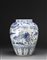 Grande giara in porcellana bianca e blu, decorata con Guiguzi che scende...